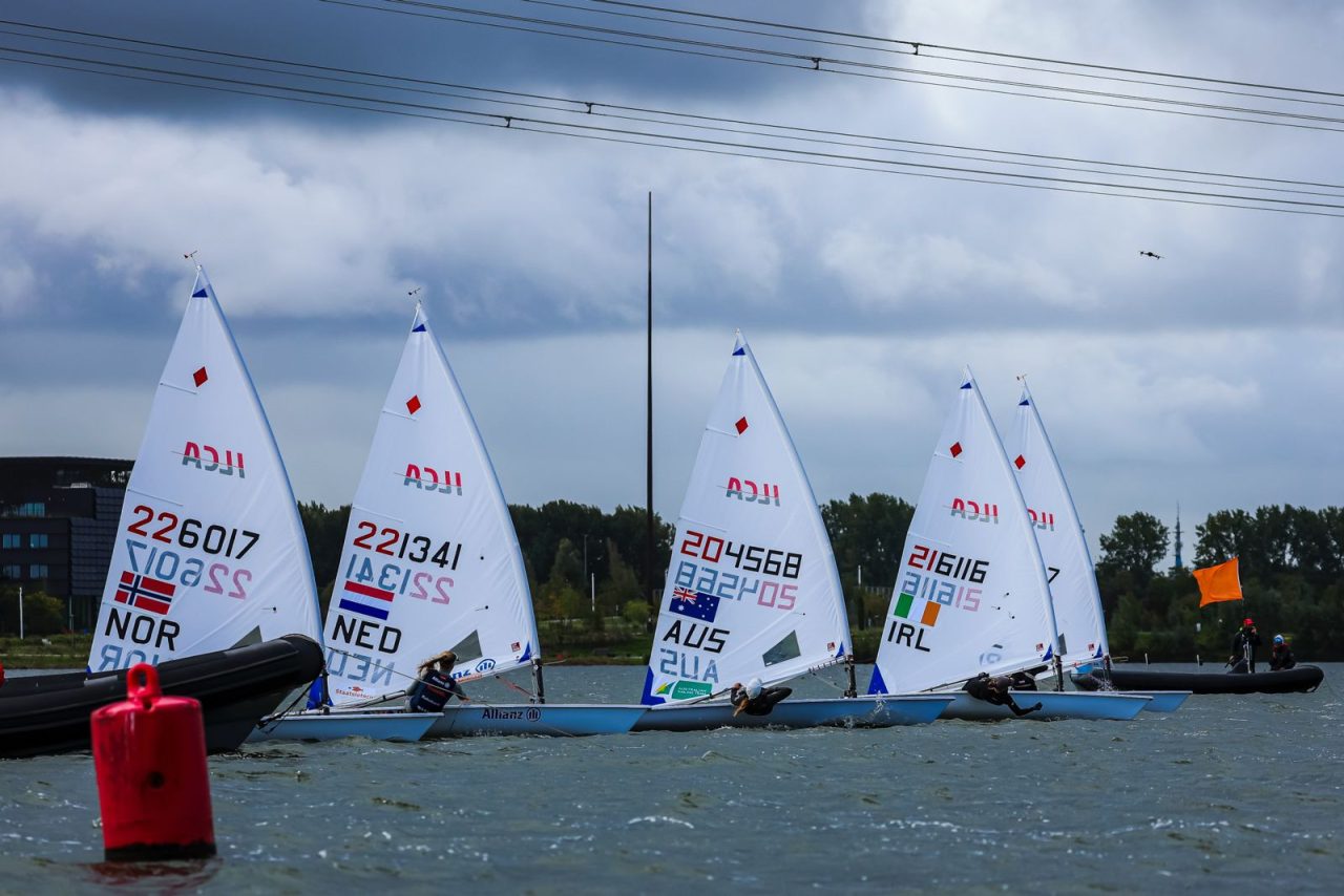 Roos Wind werd derde in de ILCA 6 klasse en blikt na een twee dagen op het Weerwater terug op het testen van verschillende wedstrijdformats: ‘De wind gaat echt alle kanten op maar goed buiten de boot kijken en dan een beetje slim tactisch varen. Dat is eigenlijk de beste strategie hier. De wedstrijdjes zijn een stuk korter dan normaal. En we varen nu de finale met maar vijf boten, dus een klein veld. Ik vind het wel leuk wat anders. En ik denk dat het goed is dat er hier nieuwe formats worden getest.